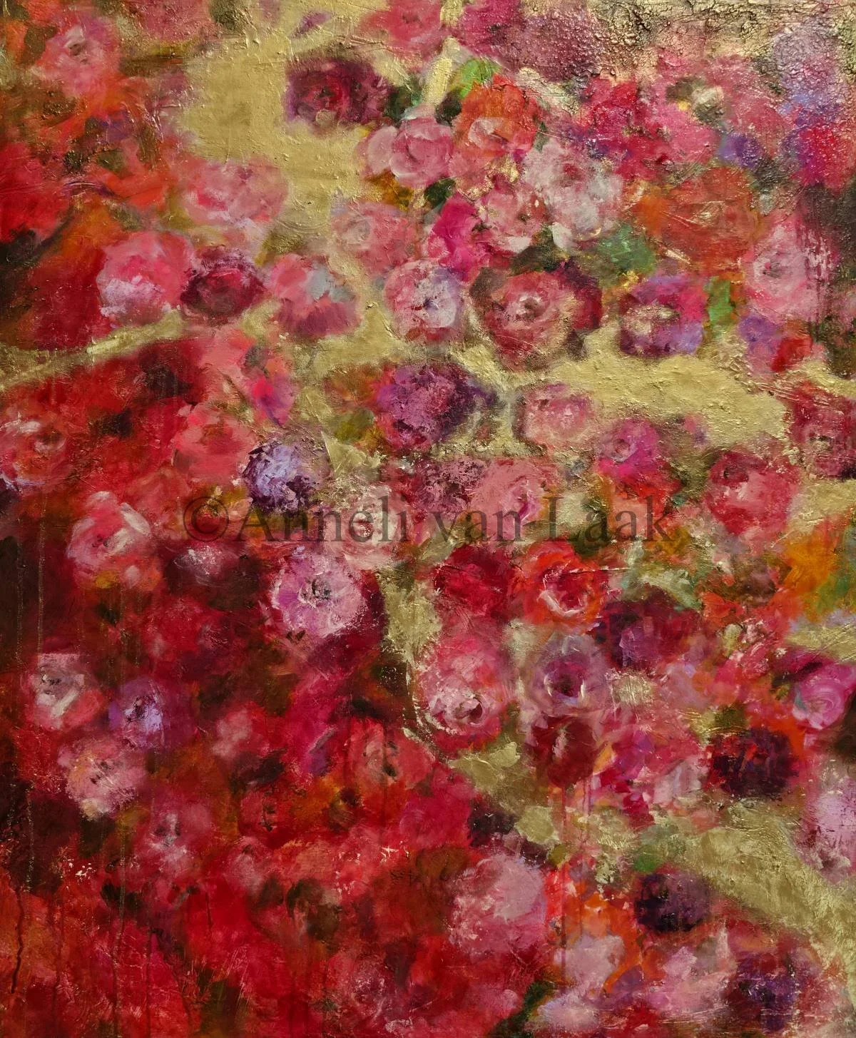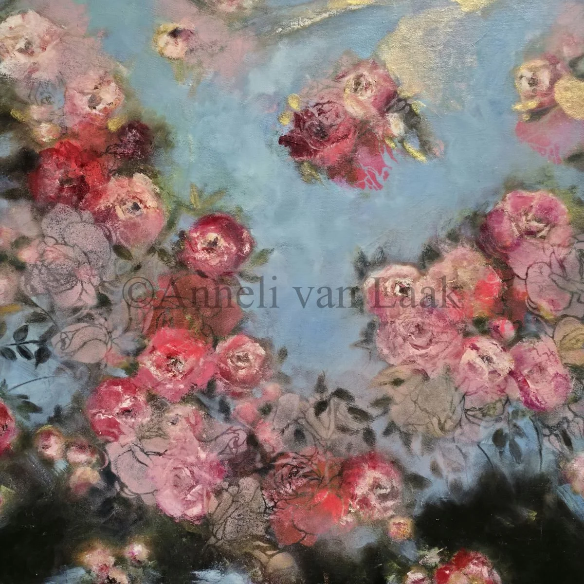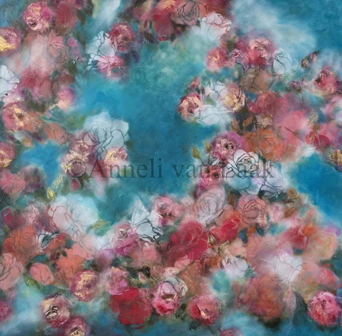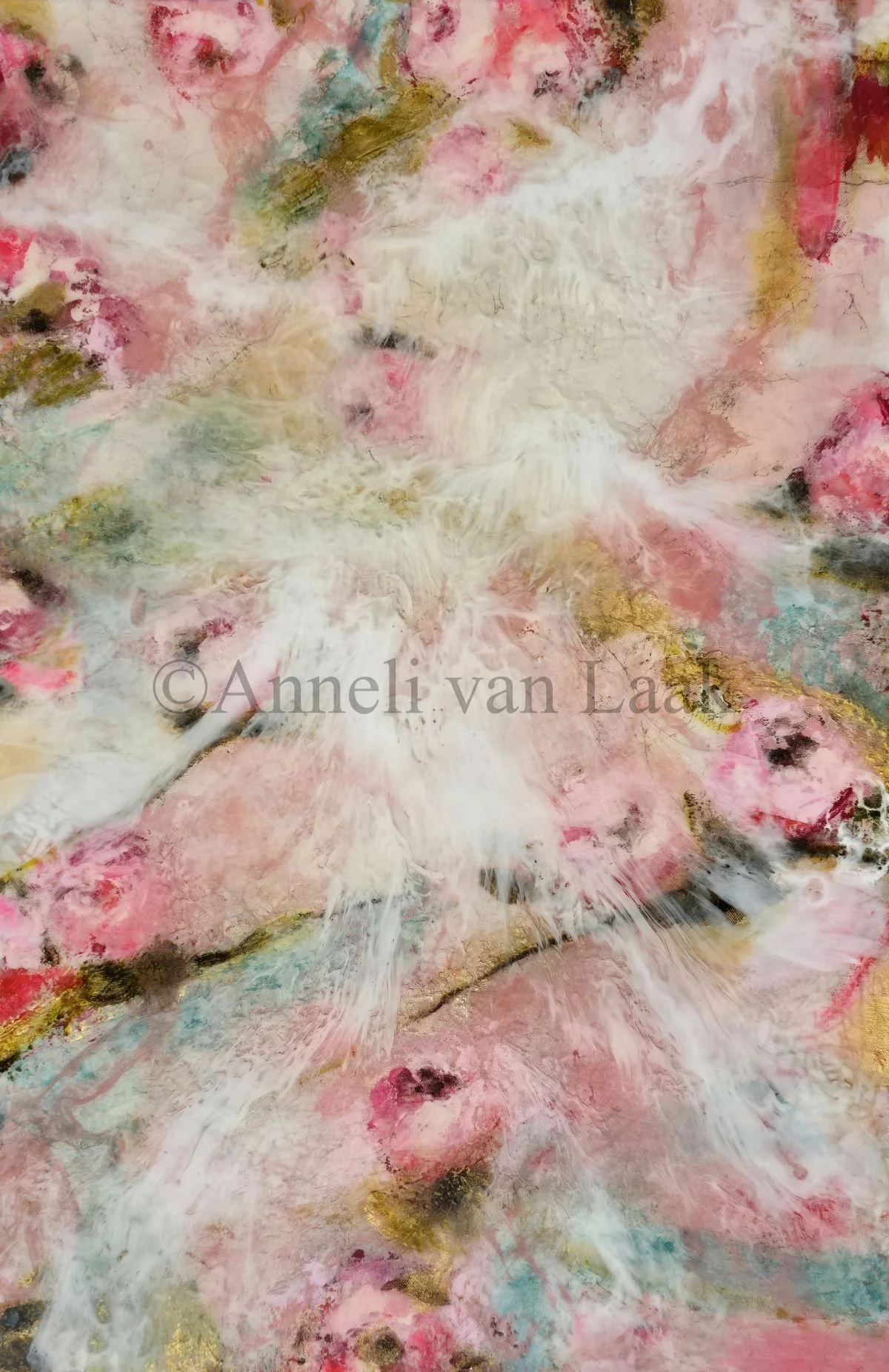 Medium | Acrylics, Paper, Texture Paste, Metal Fluid, Oil, Frosted Rose Petals, Resin
